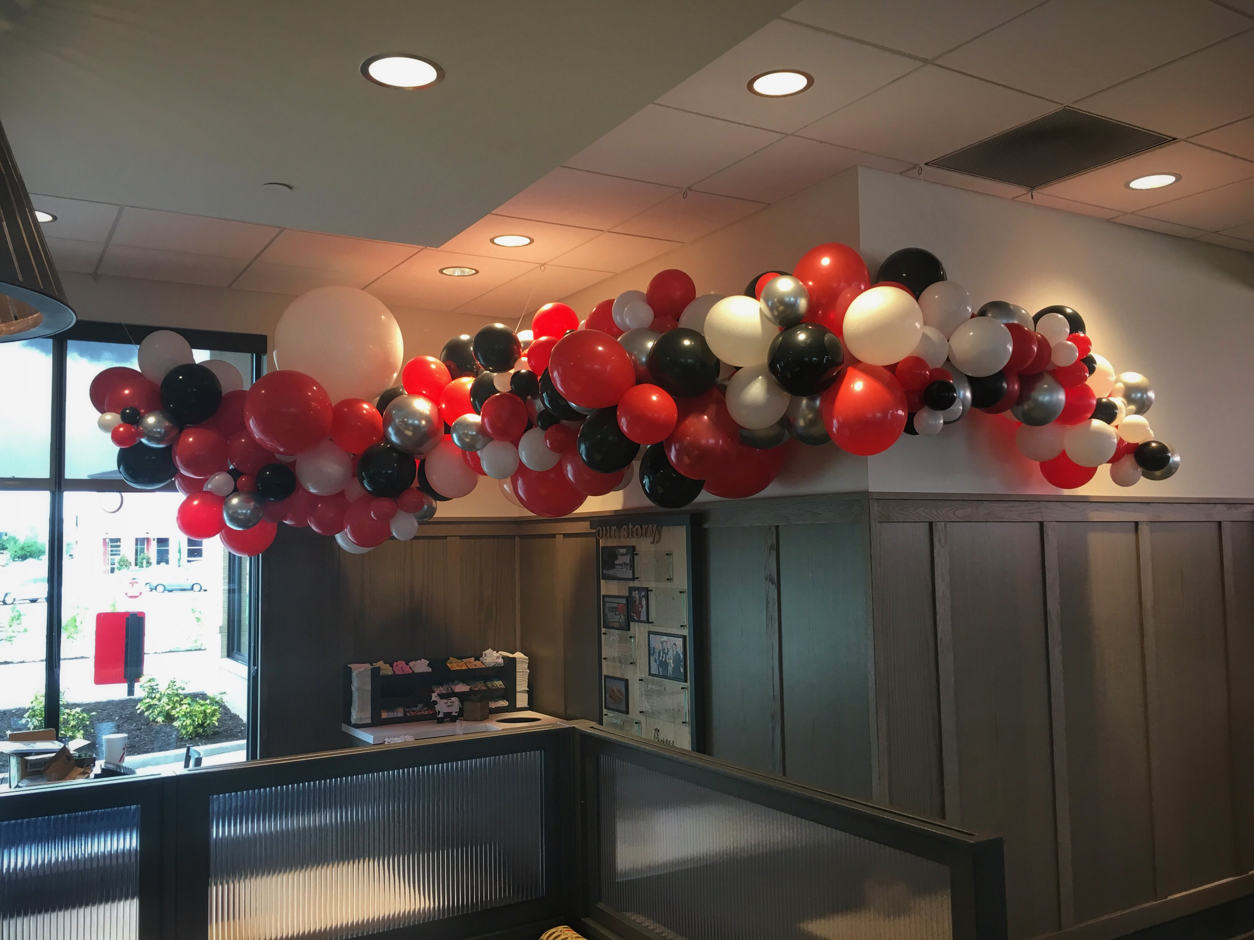 Air-filled decorations can last up to 2-4 weeks when kept in an air conditioned space, protected from direct sunlight and sharp objects. Latex balloons naturally become less shiny over time but in most cases we can apply a treatment to prevent this oxidation and keep your display shiny for much longer. For very long installations, we provide a refresh service where our team comes back one or more times during the life of your display to replace any balloons that have lost air and reapply the shine treatment to keep your display looking great!